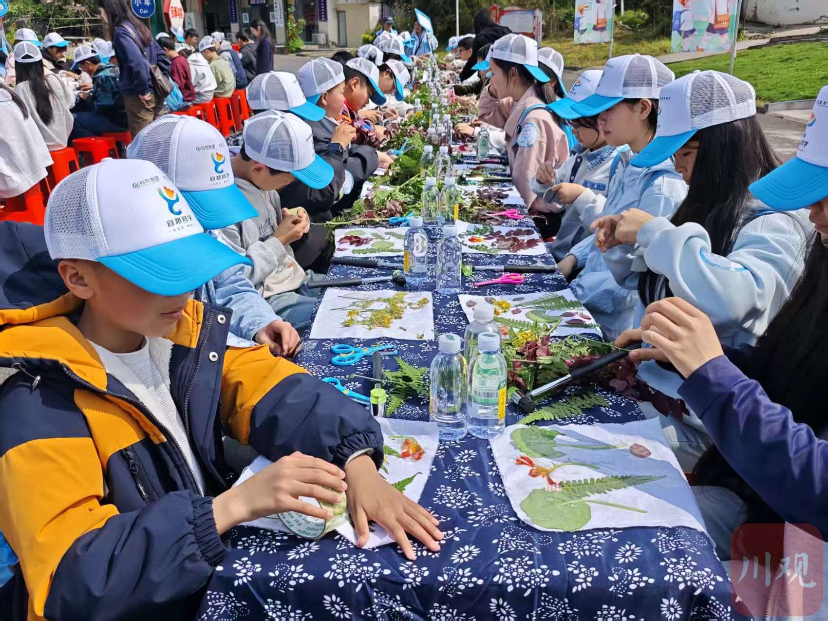 在珙县非物质文化遗产馆,学员们采集花叶制作春意手工画。