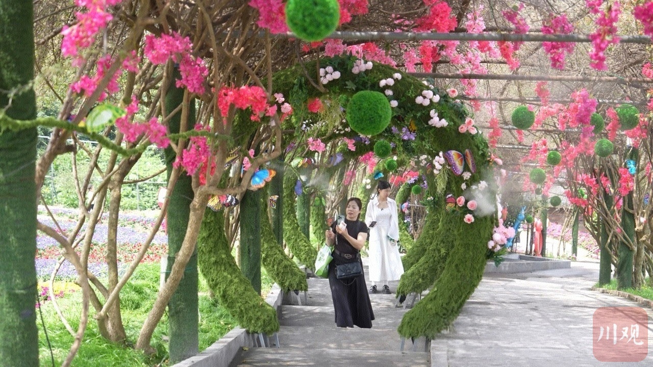 不止花海迷人。景区打造了网红打卡点——“绿野仙踪迷雾森林”,森林里枝条错落生长,阳光穿过枝叶缝隙洒下斑驳光影,一步踏入,仿佛闯进童话里的秘境,仙气十足,成为不少年轻人的拍照首选。