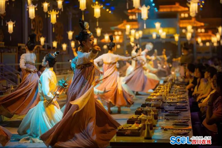近日,宜宾兴文石海景区《仙宴洞天—逍遥宴》成功入选“跟着第十四届中国艺术节游川渝”100个文旅特色场景,将助力兴文石海创建国家5A级旅游景区。该溶洞餐秀依托亚洲最大溶洞群——天泉洞,将苗疆风情长桌宴与非遗歌舞表演融入奇幻的喀斯特地貌中,为游客带来视听味的多重享受。