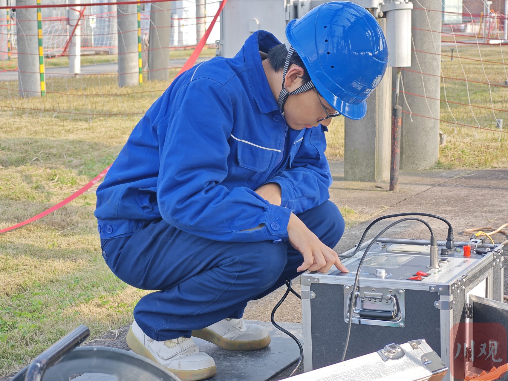 该变电站担负着持续供电任务,如何在不影响电网安全运行的前提下,安全、高效地完成改造?国网宜宾供电公司变电运检中心调试班技术员邓小杨,指着现场一个临时接入的装置,揭秘了本次检修的创新点:“我们在改造后投运的线路测试中,引入外接过流保护装置临时充当保护。”