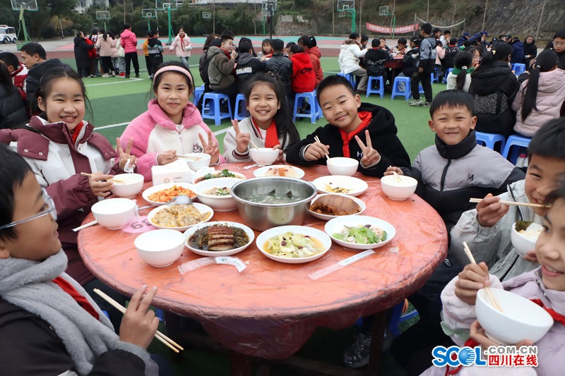 逮鸡捉鸭,吃九大碗。近日,宜宾市高县文江镇中心小学校举办“寻根传统文化共品家乡年味”迎新春活动,全校1000余名师生欢聚一堂,沉浸式体验家乡年味,喜迎新春佳节。