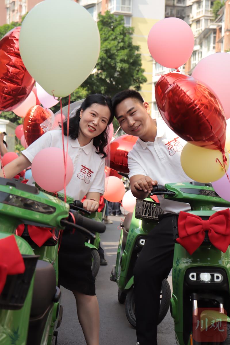 “能和心爱的人一起骑单车在街头漫游,很浪漫!”5月20日,宜宾市长宁县举办首届集体骑行婚礼,12对新婚夫妇骑着单车漫游在县城街头,用这种独特的方式表达彼此的爱意,以简约方式践行文明婚俗。