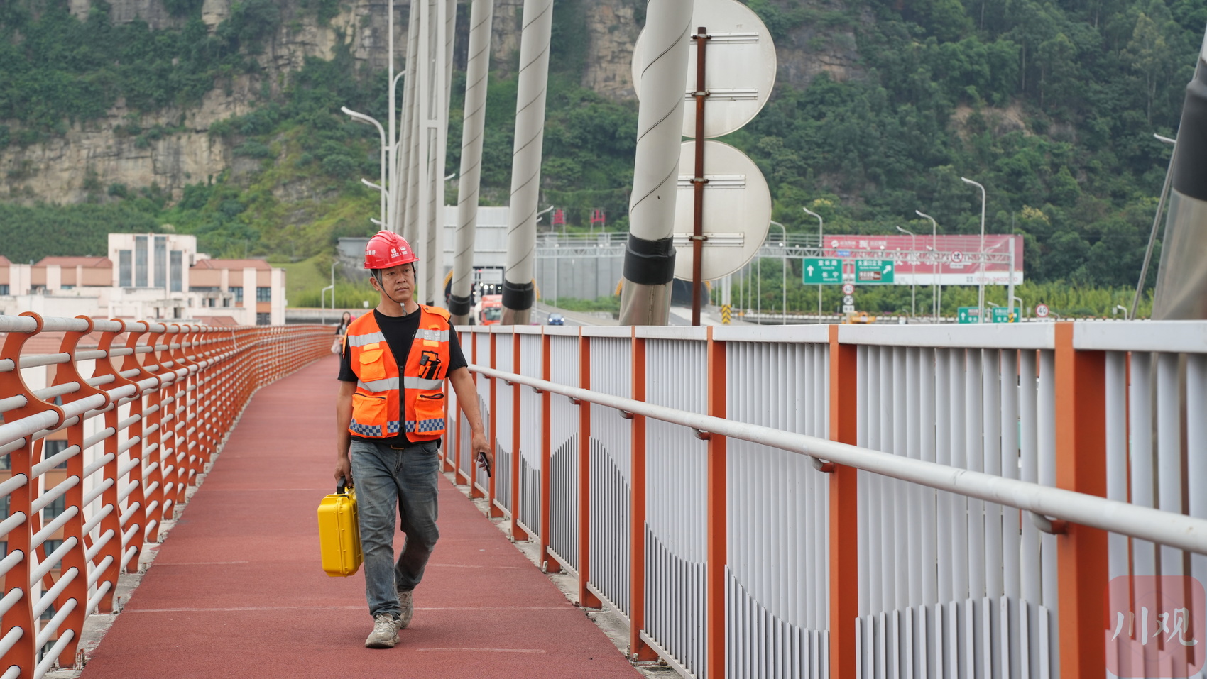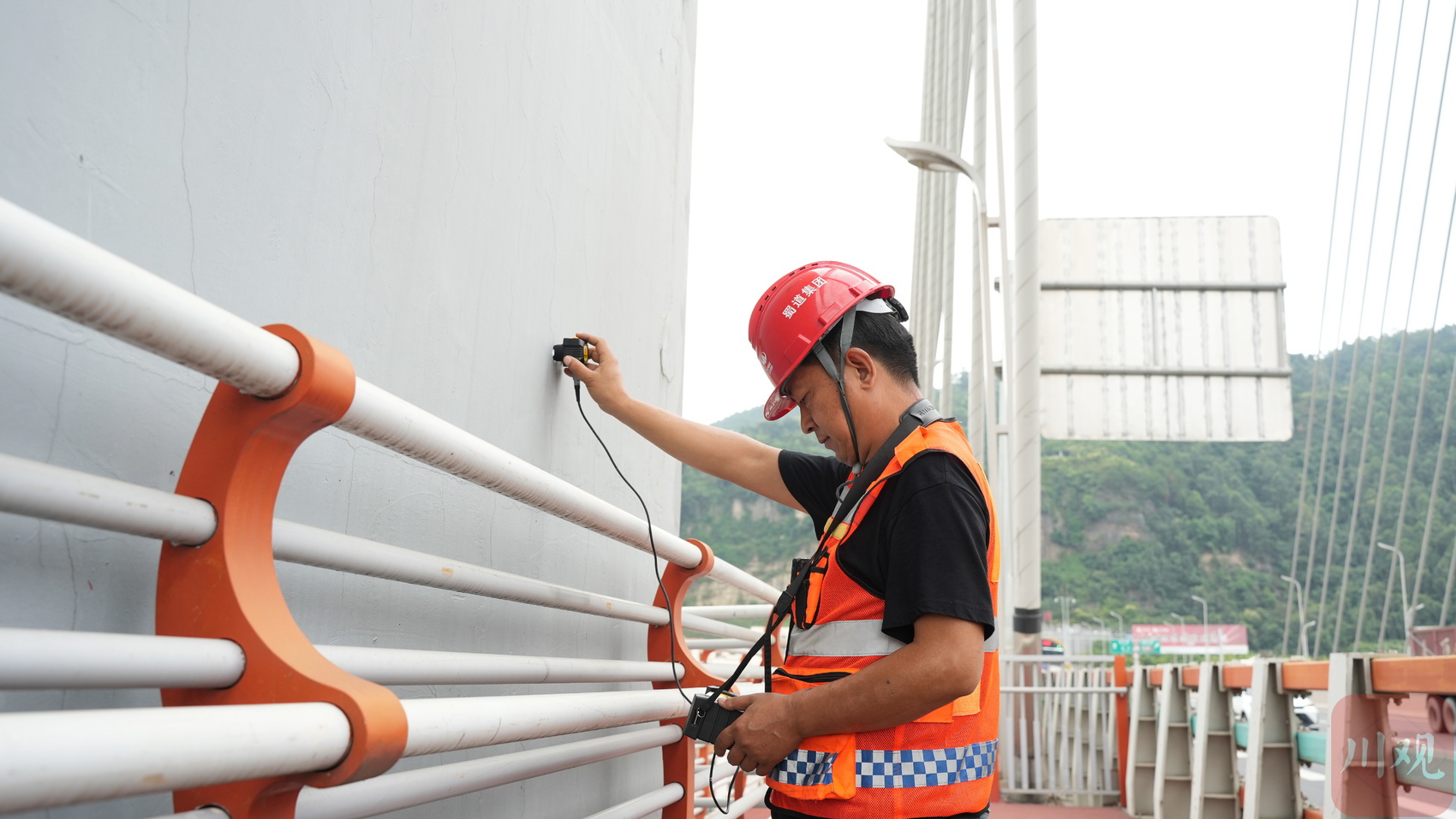 “裂缝长0.5米,宽0.17毫米。”9月18日,宜宾三江新区盐坪坝长江大桥,车流如织。桥边人行步道上,宜宾市桥隧管养中心现场工长杨中权发现一条细微裂缝后,拿着裂缝测宽仪紧贴着桥墩表面,他立即用记号笔标出裂缝长度、宽度,拍照、上传,短短几秒,数据已通过手机APP实时录入智慧养护平台。