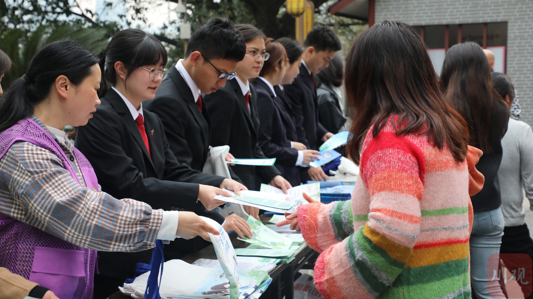 翠屏区“古树名木”保护科普宣传活动现场,工作人员向市民发放宣传资料。秦旭 摄