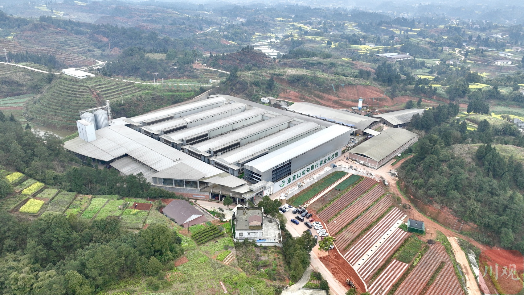 从宜宾城区出发驱车一路向北,50多公里的省道过后驶入弯弯曲曲的乡道,几分钟后便在山沟里看到一座“庞然大物”——宜宾山勾勾现代农业科技园。