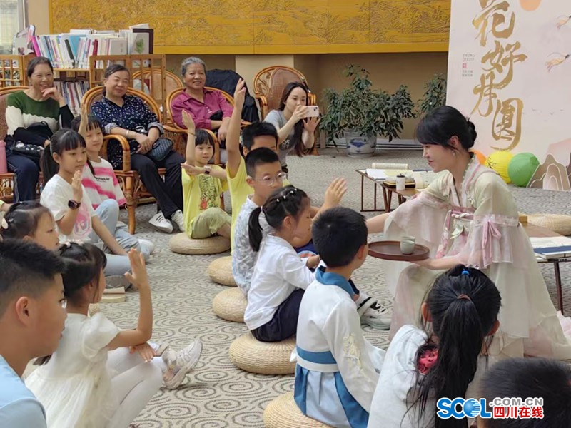 10月6日,宜宾市图书馆二楼“僰道书香”阅读空间内茶香弥漫、古韵悠长,一场别开生面的“月满茶香·古籍寻踪”中秋沉浸式剧本体验活动在此温情上演。读者们化身唐代茶客,在多线剧情与互动演绎中,共同体验了一场融合古籍、茶道与中秋文化的沉浸之旅。