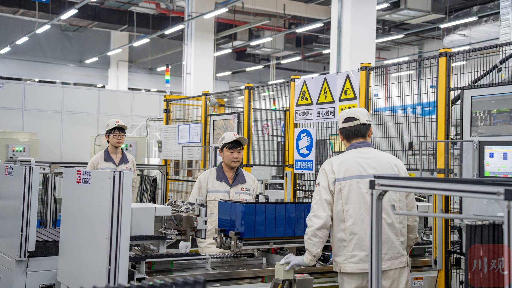 中车时代是中车株洲电力机车研究所有限公司的全资子公司,2024年落户宜宾,是首批入驻宜宾储能产业园的龙头企业,总投资约7亿元,分两期建设。一期项目建设8吉瓦时PACK及储能直流舱集成生产线,2024年1月开工,9月底全面达产,实现“当年开工、当年投产”,去年年产值达25.22亿元。二期项目新增5吉瓦时PACK及储能直流舱集成生产线,全面达产后基地年产值将跃升至50亿元,成为中车株洲所在国内规模最大的储能装备生产基地。