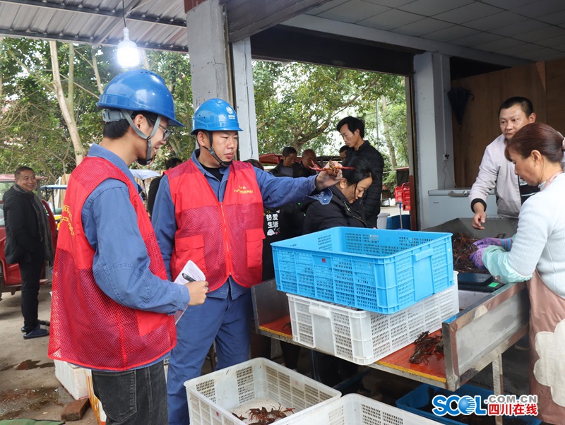 近日,在宜宾市南溪区汪家镇新桥村稻虾综合种养基地,养殖大户丁海波身着防水裤,熟练收起地笼。一只只青壳白净、肉质饱满的小龙虾活蹦乱跳,很快装满盆桶。当天,国网四川电力(宜宾南溪)连心桥共产党员服务队也特意来到基地开展“义诊”。