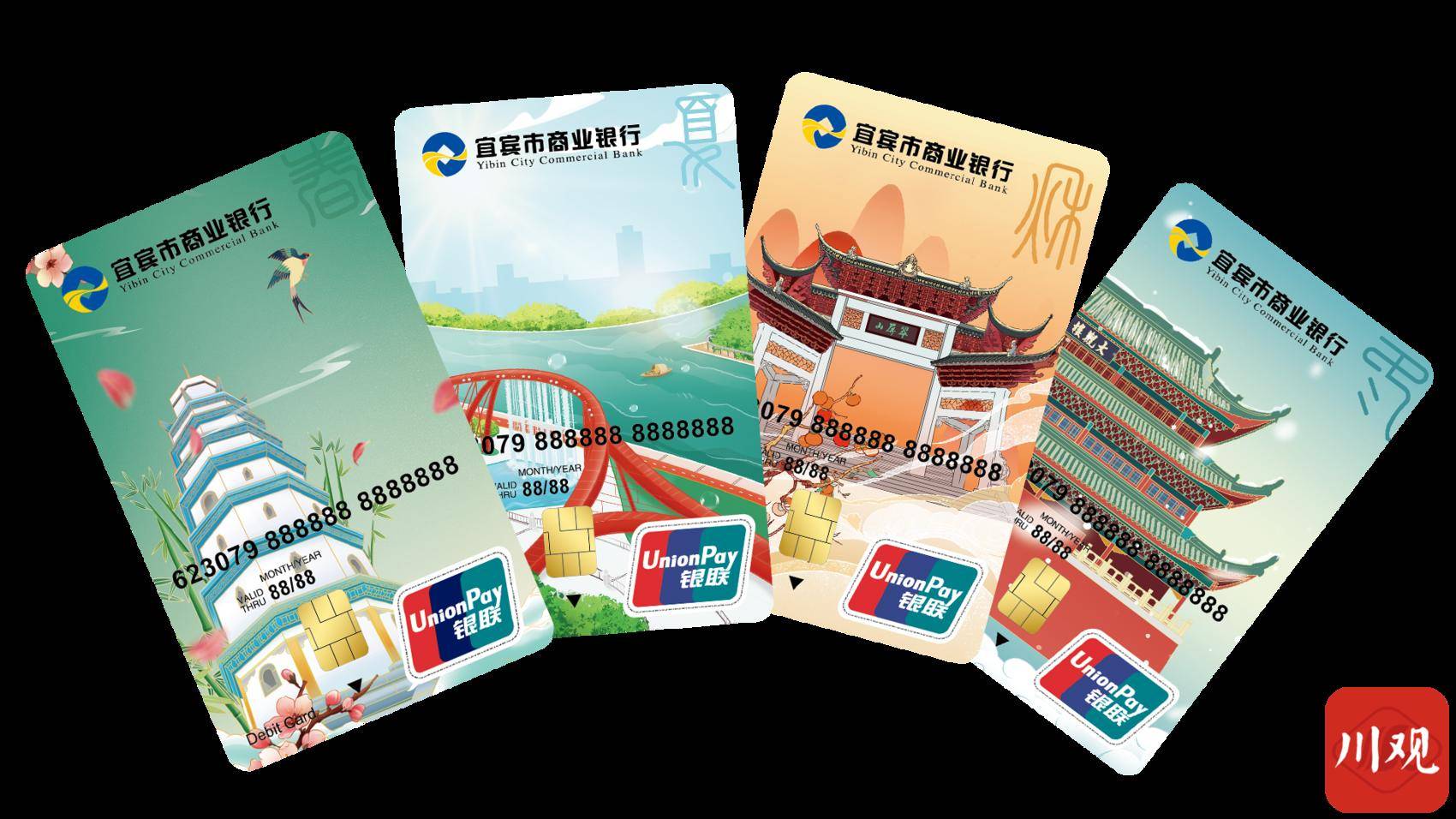 另外,为助力本土文旅品牌建设,该行还从本土文化肌理中萃取灵感,精心打造了以“宜商四景四季”为主题的银行卡系列。累计发行量突破18万张的卡片融合了“春之白塔的灵秀、夏之三江口的壮阔、秋之翠屏山的静谧、冬之大观楼的厚重”,具有观赏收藏价值。这些宜宾标志性景观通过金融产品具象化,让银行卡不仅是便捷的支付工具,更成为行走的“城市名片”,让“万事皆宜・天下为宾”的城市形象更深入人心。